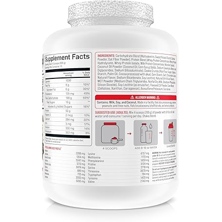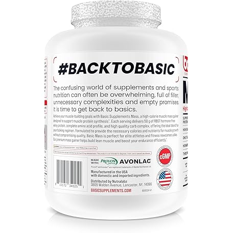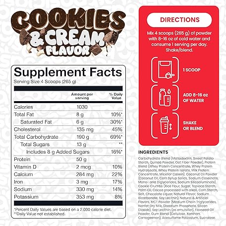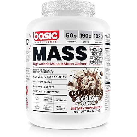 BASIC SUPPLEMENTS Mass Gainer Protein Powder, Supports Muscle Growth & Recovery, 50g Protein, 190g Carbs, 1030 Calories, Gluten-Free, RBST-Free, No Artificial Colors (6 Pound, Cookies and Cream)