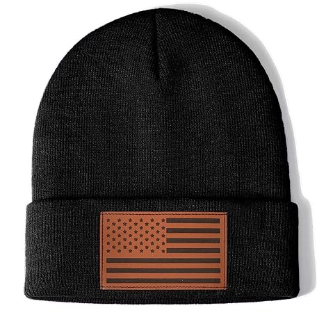 Bavace American Flag Beanie Hat for Men Women Leather USA Flag Tactical Police Army Military Gear Beanie Cap Gifts