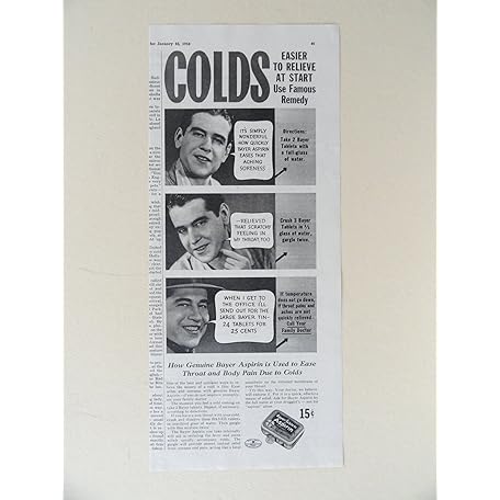 Sản phẩm Bayer-Tablets of Aspirin. 30's print ad. (colds) original vintage 1938 Collier's magazine Print Art. đang được bán với giá ưu đãi là 0 tại nước Mỹ.