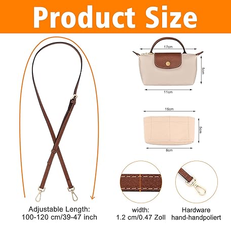 Thông tin sản phẩm BBKON 2Sets Shoulder Strap for Longchamp Bag Women, Purse Organizer, No-Punch Length Adjustable Leather Replacement Strap