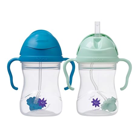 b.box Lansinoh Weighted Straw Sippy Cup for Babies 6 Months+ (2 Pack)| Leak‑Proof, BPA‑Free, 8 oz Toddler Cup | Drink From Any Angle | Easy Grip, Dishwasher Safe | Cobalt/Mermaid