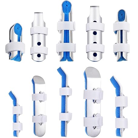 Thông tin sản phẩm BBTO 10 Pieces Finger Splint Metal Finger Support Knuckle Stabilizer with Soft Foam Interior and Protective Vent, 3 Sizes(Blue,10 Pieces)