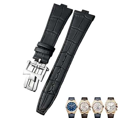 BDNJN 25-8mm Genuine Leather Convex Interface Watch Strap,For Vacheron Constantin Overseas Black Blue Brown Bamboo Grain Watch Bands