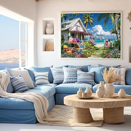 Thông tin sản phẩm Beach House Puzzles Summer Puzzle 1000 Piece for Adults, Seaside Retreat Jigsaw Puzzles Ocean Puzzles, Seashore House Puzzle Challenging Jigsaw Puzzles As Home Decor