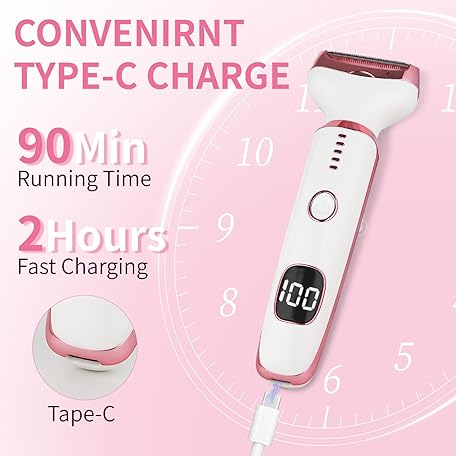 Beanify Wet & Dry Electric Razorfor Women Men,4 in 1 Rechargeable Led Display Electric Shaver and Facial Hair Remover,Painless Ladies Body Razors for Nose Face Body Leg Bikini Arm Hair