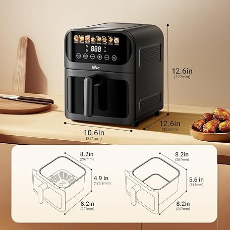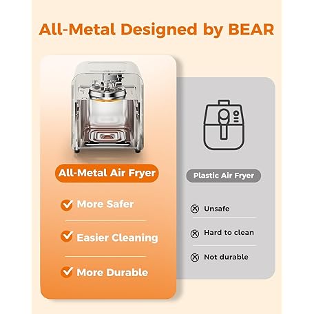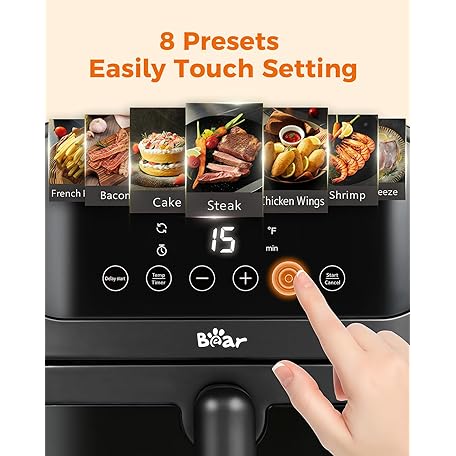 Thông tin sản phẩm Bear Air Fryer, Stainless Steel Airfryer 8 Presets for Fast Family Meals, 6.4Qt Large Visible Window Temp Timer Adjustable Roast Bake Crisp French Fries Steak, Non Stick Basket Dishwasher Safe