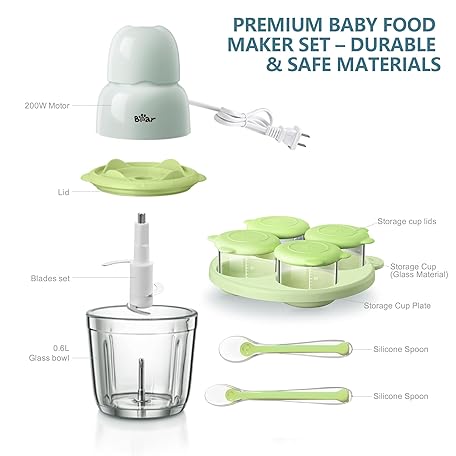 Thông tin sản phẩm Bear Baby Food Maker, Baby Food Processor Set with Baby Food Containers, Silicone Spoons, Baby Food Puree Blender for Fruit, Vegetable, Meat, Make Fresh and Nutritious Meals for Your Little One