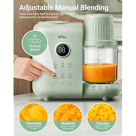 Thông tin sản phẩm Bear Baby Food Maker with 18.5oz Dual-Layer Steam Baskets, OneStep Baby Food Processor Steamer Puree Blender Grinder Mills, Auto Cooking Grinding&Sterili-zing for Healthy Homemade Baby Food, BPA-Free