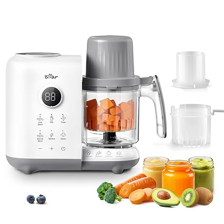 Bear Baby Food Maker with 18.5oz Dual-Layer Steam Baskets, OneStep Baby Food Processor Steamer Puree Blender Grinder Mills, Auto Cooking Grinding&Sterili-zing for Healthy Homemade Baby Food, BPA-Free