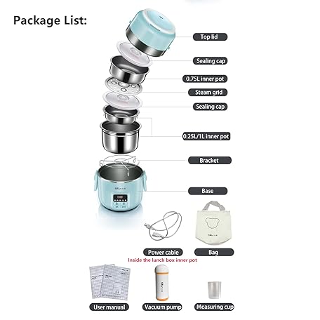Thông tin sản phẩm Bear DFH-B20J1 Smart Self Heated Lunch Box, Mini Hot Pot, Leakproof Plug-in Lunch Box with Keep Warm Function, Blue, 2L