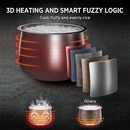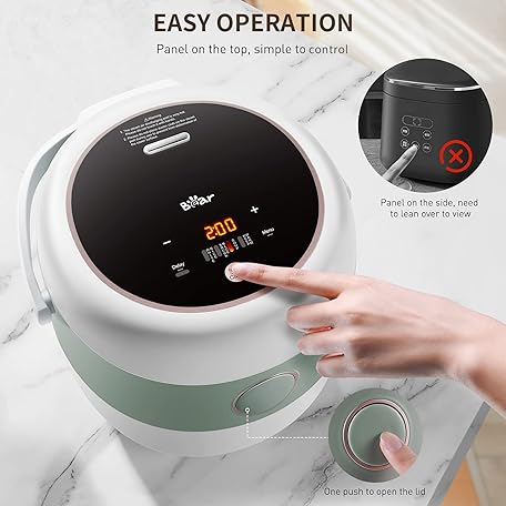 Thông tin sản phẩm Bear Rice Cooker 3 Cups (Uncooked), 3D Heating and Fuzzy Logic, Healthy Nonstick Small Rice Cooker, PFAS-Free, Touch-Screen, for White/Brown Rice Quinoa Oatmeal Soup