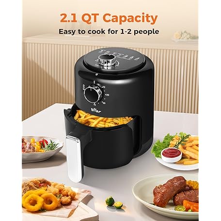 Bear Small Air Fryer 2.1 QT, Mini Airfryer Adjustable Time&Temp Control, Compact Size Space Saving for 1-2 People Quick Healthy Meals Snack in Minutes with Nonstick Basket