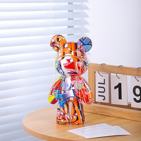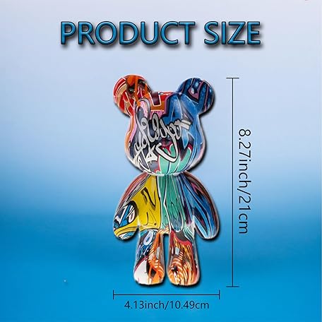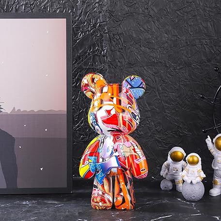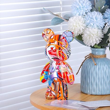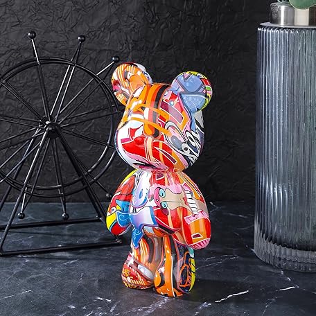 Bear Statue Resin Graffiti Animal Sculpture for Home, Office Decor, Abstract Design for Birthday, Anniversary and Gift Present (Graffiti)