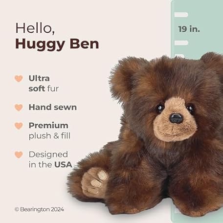 Sản phẩm Bearington Collection Huggy Ben Plush Bear Stuffed Animal - 19 in Brown Grizzly Bear - Ultra-Soft Plush & Bean Bag Weighted Stuffed Animal - Poseable Sitting & Display đang được bán với giá ưu đãi là $37.823 tại nước Mỹ.
