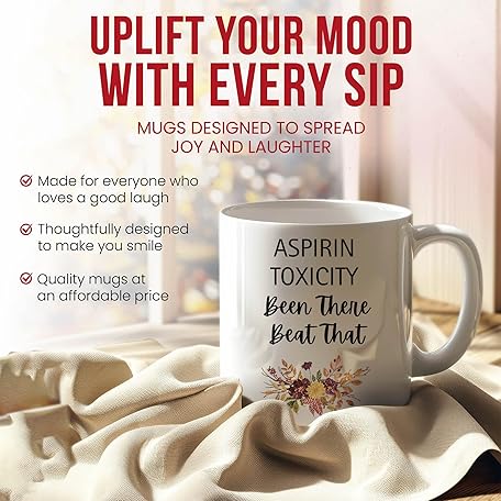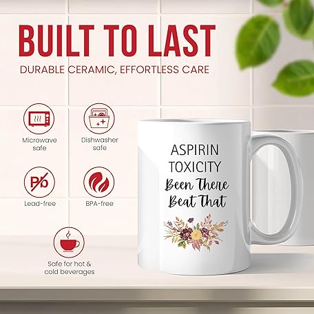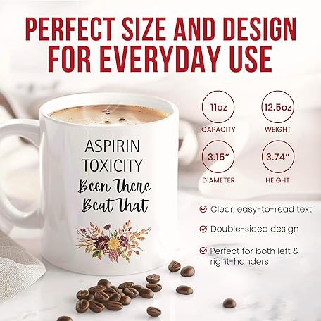 Thông tin sản phẩm Beat Aspirin Toxicity Mug - Medication Coffee Cup - Funny Gift From Friends - Drug Awareness Tea Mugs - Health Risk Cups - 11 Oz Ceramic Gifts For Patients, Birthday, Him, Her, Day, Education