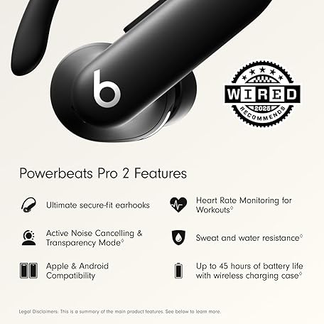 Thông tin sản phẩm Beats Powerbeats Pro 2 - Wireless Noise Cancelling Workout Earbuds with Secure- Fit Earhooks, Up to 45-Hour Battery with Charging Case, Sweat & Water Resistant, Heart Rate Monitoring - Jet Black