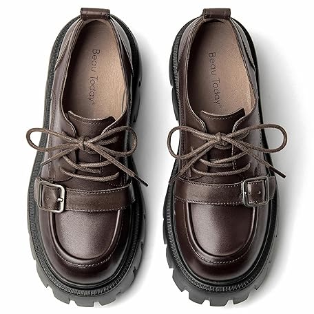 BEAU TODAY Platform Oxfords for Women, Oxford Shoes for Women, Chunky Leather Lace Up Oxford Shoes, Casual Comfort Business Work Office Dress Shoes