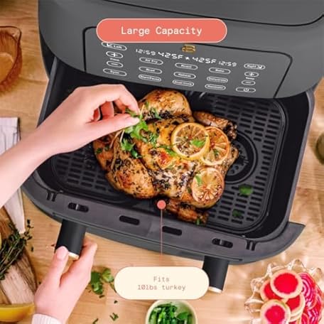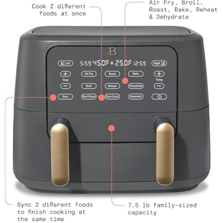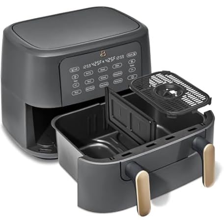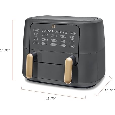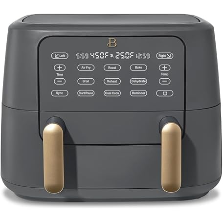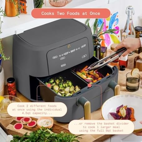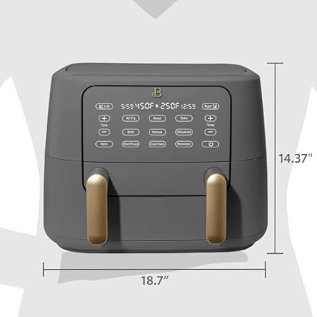 Beautiful 9QT TriZone Air Fryer, Dual Baskets or Single XL Basket, Sync Finish, Touch Display, 1700W, Roast, Bake, Broil, Dehydrate, Reheat, Dishwasher Safe, Drew Barrymore Design (Oyster Grey)