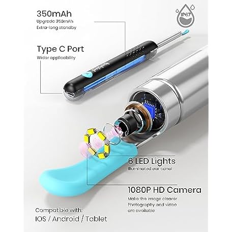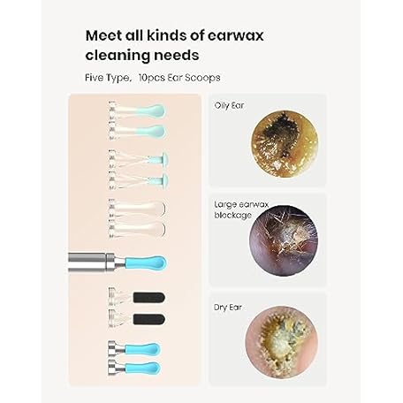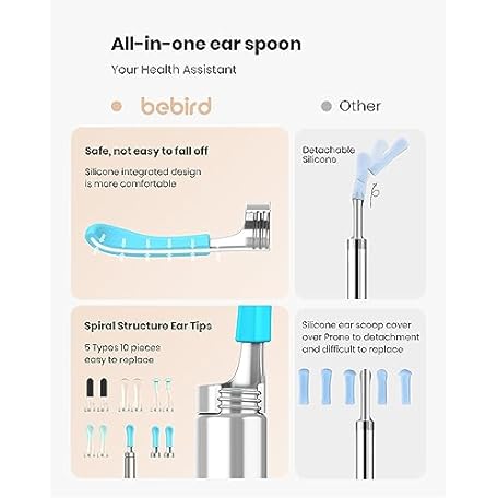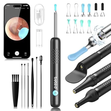 Thông tin sản phẩm BEBIRD R1 Wax Removal Tool for Ear - Spade Ear Canal Cleaner with Camera 1080P Earscope, Wax Remove Ear Picker with Vari Replacement Tips, Camera with 6LED Light for Ear/Nose/Throat Examination, Black
