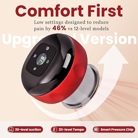 Thông tin sản phẩm Becommend 5-in-1 Smart Dynamic Cupping Therapy Set with 20-Level Heat & Suction, Cupping Kit for Massage Therapy, Electric Cupping Device with Red Light for Back Pain, Knots, Soreness Relief (Red)