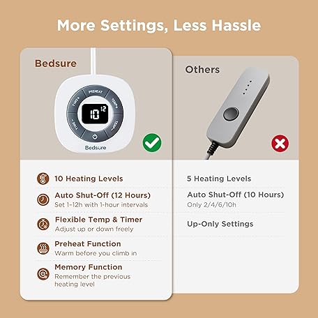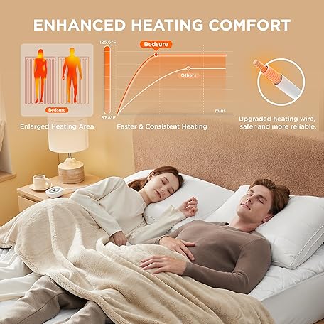 Thông tin sản phẩm Bedsure Heated Mattress Pad Queen - Bed Warmer with Memory & Preheat Functions, 12-Hour Auto Off & 10 Heat Settings, Dual Controllers, Fast Heating, Brushed Electric Mattress Pad Queen, 60"x80"