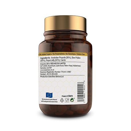 Thông tin sản phẩm Bee and You Royal Jelly Tablet, Propolis Extract, Bee Pollen, 100% Natural Superfood, Ultra Pure, Immune Support Supplement, Improve Energy, Focus, Antioxidants, Fresh, Keto, Paleo, Gluten-Free | 60ct