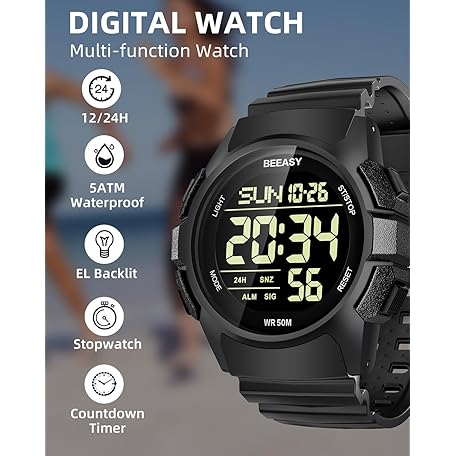 Sản phẩm Beeasy Men Digital Sports Watch,Waterproof Watch with Stopwatch Countdown Timer Alarm Function Dual Time Rubber Strap Wrist Watch for Men/Student đang được bán với giá ưu đãi là $22.8791 tại nước Mỹ.