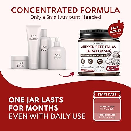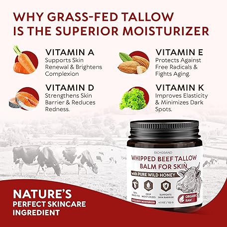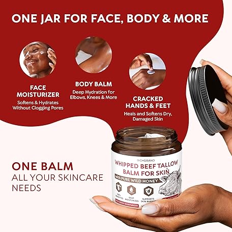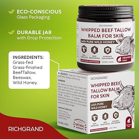 Thương hiệu RICHGRAND là cái tên nổi tiếng được rất nhiều khách hàng trên thế giới chọn lựa. Với kiểu dáng đẹp mắt, sang trọng, sản phẩm Beef Tallow for Skin - Whipped Tallow and Honey Balm - Grass Fed Beef Tallow for Face, Daily Moisturizer & Body Butter - Natural Non Comedogenic Skincare (4.3 oz) là sự lựa chọn hoàn hảo nếu bạn đang tìm mua một món cho riêng mình.