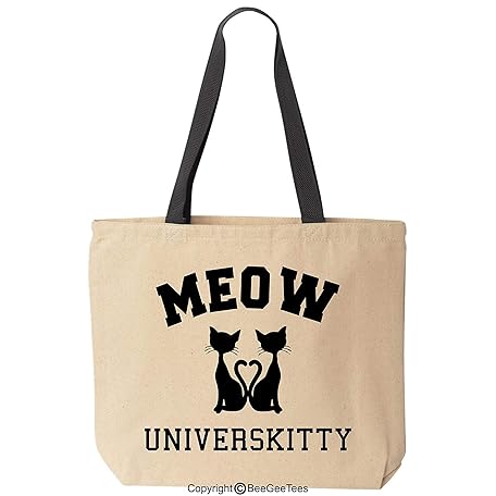 • BeeGeeTees MEOW Universkitty Funny Cat Canvas Tote Reusable Bag