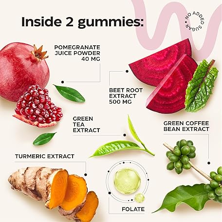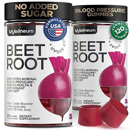 Beets for High Blood Pressure 120 Pcs (2 Pack) - Beet Root Chews with Pomegranate Juice Powder - Nitric Oxide Gummies for Energy, Cardio Health - Gummy Supplement for Men and Women - Sugar Free