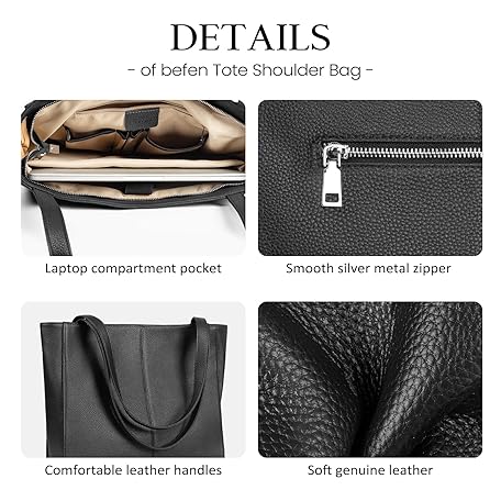 Thương hiệu befen là cái tên nổi tiếng được rất nhiều khách hàng trên thế giới chọn lựa. Với kiểu dáng đẹp mắt, sang trọng, sản phẩm befen Genuine Leather Tote Bag for Women Work, Women's Leather Shoulder Bags Purses Satchel Handbags with Laptop Compartment là sự lựa chọn hoàn hảo nếu bạn đang tìm mua một món cho riêng mình.