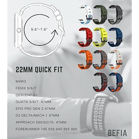 BEFIA 22mm Quickfit Watch Band for Garmin Fenix 5 6 7 Pro Solar Forerunner 935 745 965 955, 22 Breathable Wristband Strap