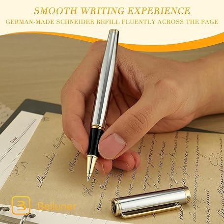 Sản phẩm BEILUNER Luxury Rollerball Pen, Stunning Silver Chrome with 24K Gold Finish,Noble and Elegant Designs,Schneider Ink Refill, Best Gift Pen for Men & Women, Professional, Executive Office, Fancy Pens đang được bán với giá ưu đãi là $21.7891 tại nước Mỹ.