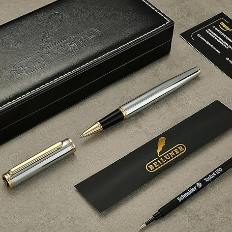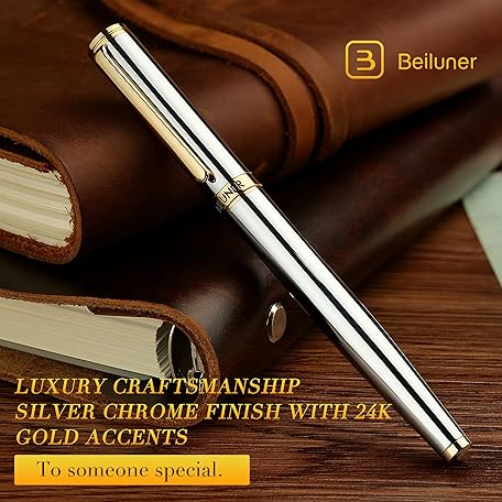 Thương hiệu BEILUNER là cái tên nổi tiếng được rất nhiều khách hàng trên thế giới chọn lựa. Với kiểu dáng đẹp mắt, sang trọng, sản phẩm BEILUNER Luxury Rollerball Pen, Stunning Silver Chrome with 24K Gold Finish,Noble and Elegant Designs,Schneider Ink Refill, Best Gift Pen for Men & Women, Professional, Executive Office, Fancy Pens là sự lựa chọn hoàn hảo nếu bạn đang tìm mua một món cho riêng mình.