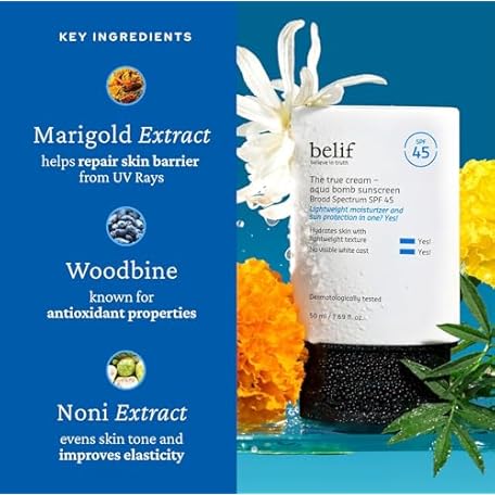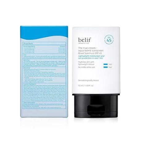 Thông tin sản phẩm belif Aqua Bomb SPF 45 Hydrating Niacinamide Sunscreen (1.69 fl. oz) - The True Cream PA++++, Daily Broad Spectrum, No White Cast, Weightless & Invisible, Non-Greasy, Korean Skincare