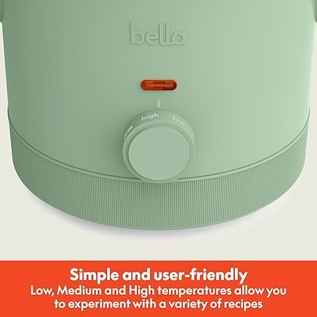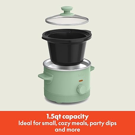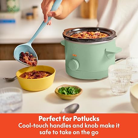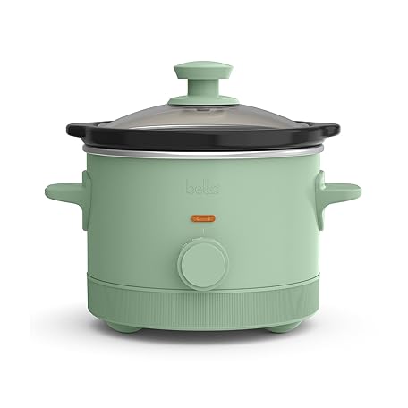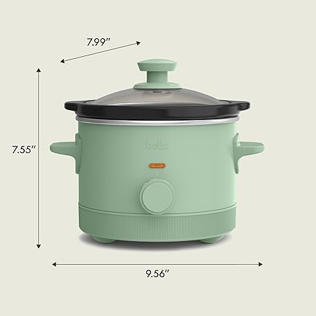 BELLA 1.5 Qt Slow Cooker with 3 Heat Manual Control, Ceramic Nonstick Coating, Dishwasher Safe Stoneware Pot and Tempered Glass Lid, Tangle Free Cord Wrap & Cool Touch Handles, Seaglass
