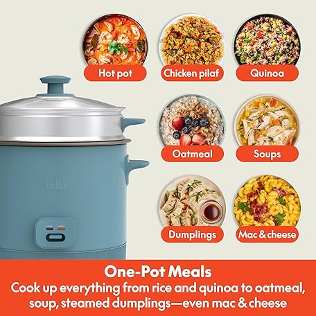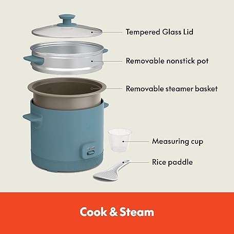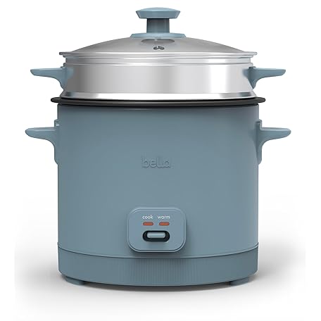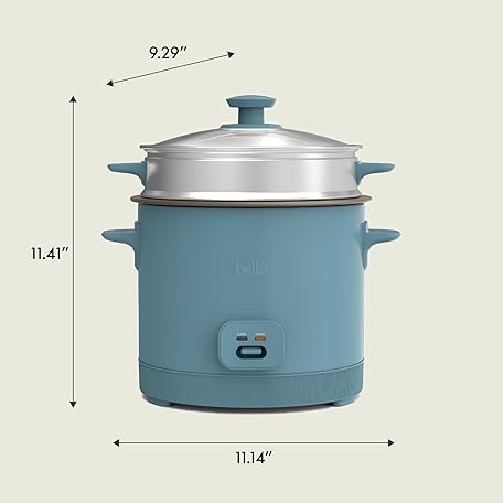 bella 16 Cup Rice Cooker with Steamer, Dishwasher Safe Steaming Basket, Rice Paddle and Measuring Cup, Removable Nonstick Cooking Bowl, Automatic Keep Warm Function, 400 Watt, Surf