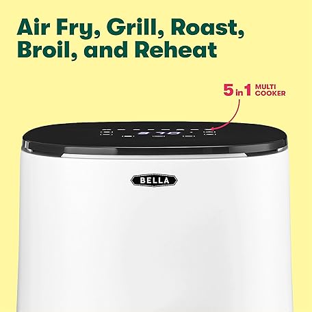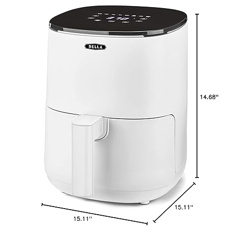 Thông tin sản phẩm BELLA 3 Qt Touchscreen Air Fryer Oven and 5-in-1 Multicooker with Removable NonstickDishwasher Safe Crisping Tray and Basket, 1400 Watt Heating System, Matte White