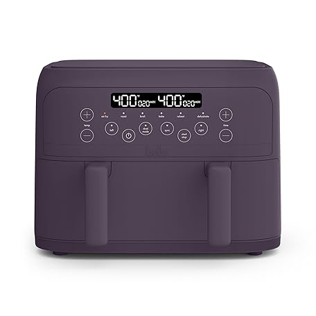bella 4 Qt TriZone Air Fryer, EverGood™ Ceramic Nonstick Coating, Dual Basket Design w Removable Divider, Digital Touchscreen Control w 6 Preset Cooking Options, 1200 Watt, 3lb Capacity, Plum