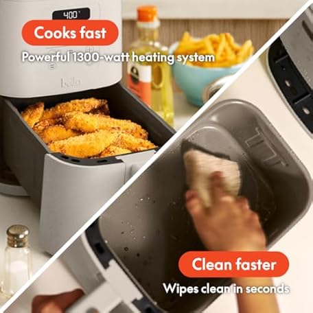 Thông tin sản phẩm BELLA 4Qt Slim Air Fryer, Fits-anywhere? Kitchenware, EverGood? Ceramic Nonstick Coating, Adjustable Temperature, 6 Preset Cooking Options, 60 Min Auto Shutoff w Audible Tone, 3.3lb Capacity, Oatmilk