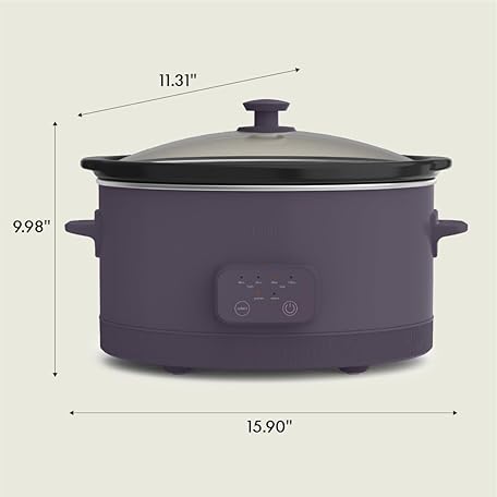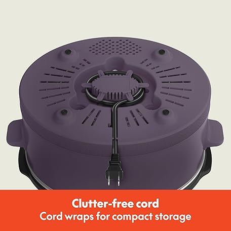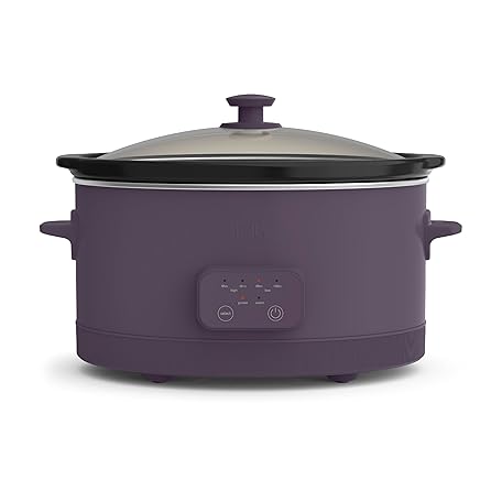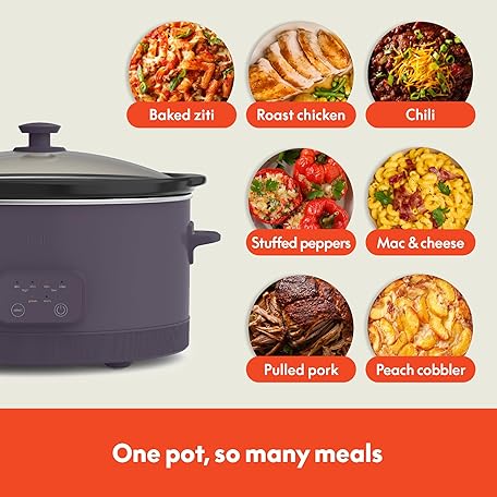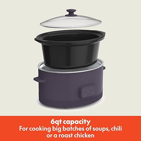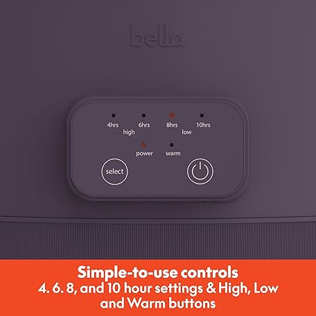 Thông tin sản phẩm BELLA 6.0 Qt Programmable Slow Cooker, Ceramic Nonstick Coating, Adjustable Temperature & Cooking Times, Dishwasher Safe Stoneware Pot & Tempered Glass Lid, Tangle Free Cord Wrap, Plum