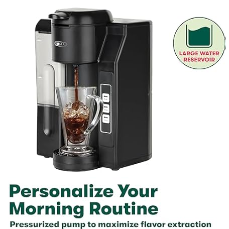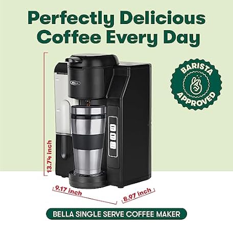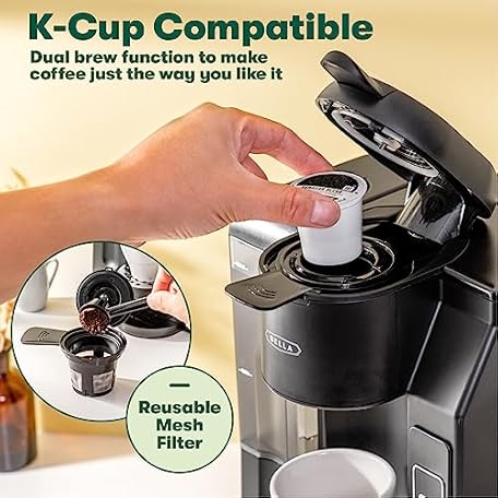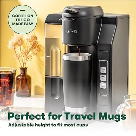 Thông tin sản phẩm BELLA Single Serve Coffee Maker, Dual Brew, K-cup Compatible - Ground Coffee Brewer with Removable Water Tank & Adjustable Drip Tray, Perfect for Travel Mug