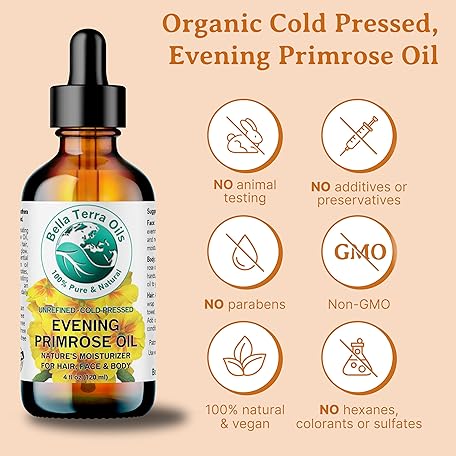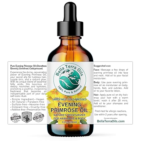Sản phẩm Bella Terra Oils Organic Evening Primrose Oil 4 oz - Dive into Pure Primrose Essence, Abundant in Fatty Acids, A Luxurious Blend for a Radiant Glow đang được bán với giá ưu đãi là $14.7041 tại nước Mỹ.