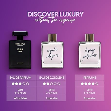 Thông tin sản phẩm BellaVita Luxury KLUB Men's Eau De Parfum (100ml) | Intense, Masculine Party Perfume for Men | Notes: Lemon, Jasmine, Rose, Musk, Amber and Patchouli | Made with Premium Long-Lasting Perfume Oils