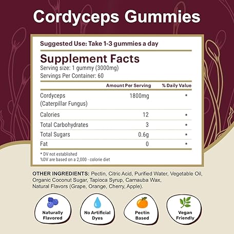 Thông tin sản phẩm Belmonia Cordyceps Mushroom Gummies — 5400mg per Serving*, Cherry, Grape, Apple & Orange Flavors, 60 Count, Vegan Mushroom Supplement for Energy, Focus & Brain Health, Made in USA