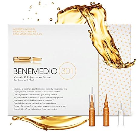 Benemedio 301, Proteoglycan Vitamin C Serum for Face and Neck Wrinkles, Fine Lines, Sun or Dark Spots and Scars Fading | Swiss Formula | 10 vials of 0.068 fl oz each