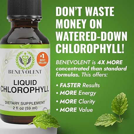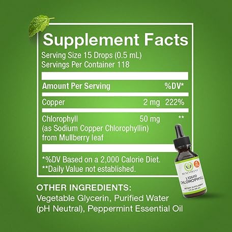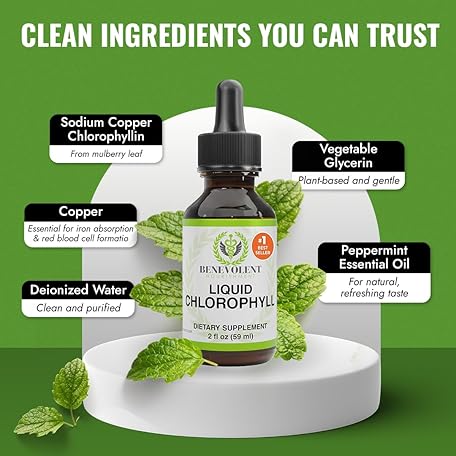 Thông tin sản phẩm Benevolent Nourishment Chlorophyll Supplement, Detox & Immune Support, Internal Deodorizer - Liquid Drops, Natural Mint Flavor, 4 Month Supply, 59ml