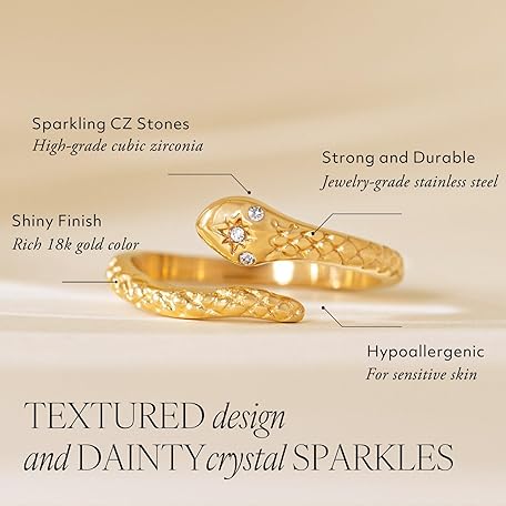 Sản phẩm BENIQUE Stackable Rings for Women non-tarnish, Dome Cuff Snake Statement Band 18K Gold Plated Stainless Steel Size 5-9 đang được bán với giá ưu đãi là $15.2491 tại nước Mỹ.