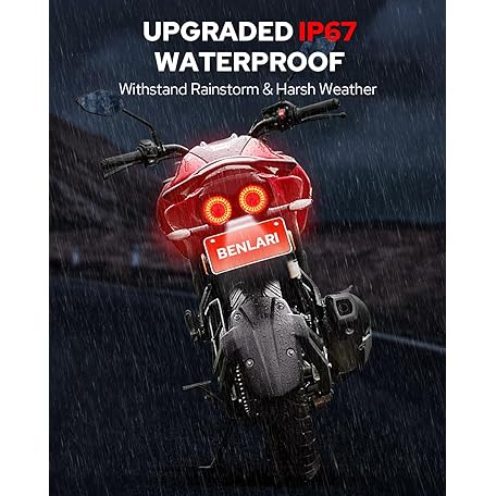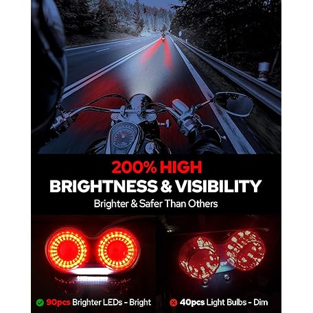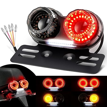 Benlari Upgraded Motorcycle Tail Light, 90LEDs Brake Lights, IP67 Waterproof Turn Signals Running with License Plate Bracket Fit for Street Bike Cruiser Chopper Bobber (Smoke)