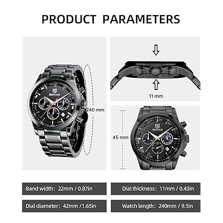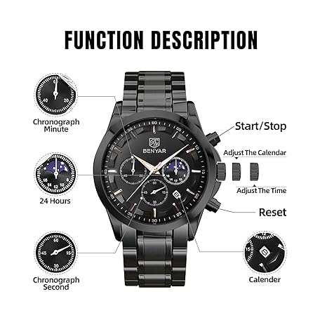 Thương hiệu BY BENYAR là cái tên nổi tiếng được rất nhiều khách hàng trên thế giới chọn lựa. Với kiểu dáng đẹp mắt, sang trọng, sản phẩm BENYAR Mens Watch Analog Quartz Movement Chronograph Stylish Casual Wristwatch with Stainless Steel Bracelets Waterproof Luminous Date Watches Elegant Gift for Men là sự lựa chọn hoàn hảo nếu bạn đang tìm mua một món cho riêng mình.